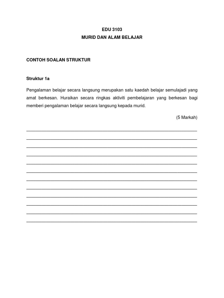 Moral ketua panitia ketua bidang kemanusian matapelajaran p. Bahagian A Contoh 1 Bahagian ini membincangkan soalan struktur yang senang tetapi susah bagi para pelajar untuk mendapat markah penuh. Contoh Soalan SPM - Struktur Esei - 05 - GELOMBANG - Pages.
